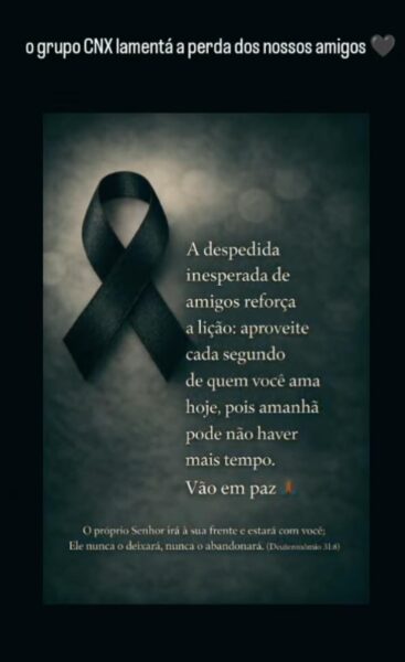 A manifestação do grupo CNX evidencia o impacto da tragédia na comunidade local, reforçando o sentimento coletivo de perda e solidariedade neste momento de luto.