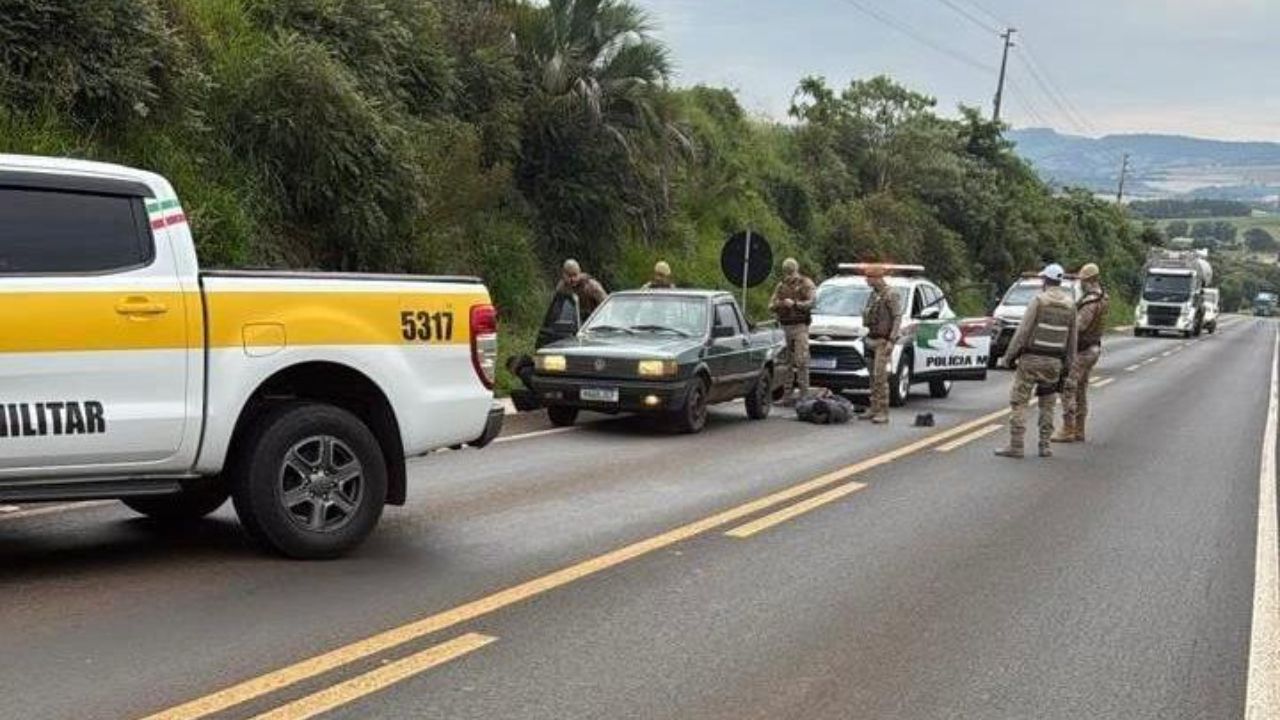 De acordo com as informações, a abordagem teve início durante uma ação de patrulhamento, quando os policiais identificaram um veículo em situação suspeita. Ao receber ordem de parada, o condutor desobedeceu e iniciou fuga, dando início a um acompanhamento policial pela rodovia.
